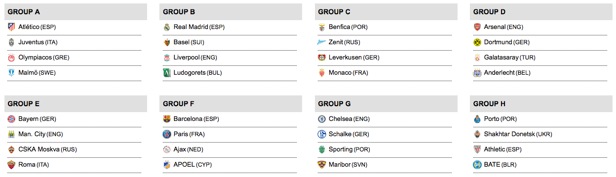 Insomma... becchiamo i campioni di Germania e Inghilterra (non so se anche di russia), 7 campioni del mondo freschi freschi, 2 colossi economici non da poco. Sarebbe stato addirittura meglio l'F o il D, solo il B da quarta secondo me potrebbe esser peggio di questo, ma non lo so. Certo, fossimo capitati nell'H, come poteva essere all'ultimo, sarebbe stato molto più semplice, ma la CL è anche questo.